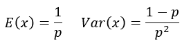 - 성공확률이 p인 베르누이 시행에서 첫번째 성공이 있기까지 x번 실패할 확률