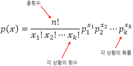 - 세가지 이상의 결과를 가지는 반복시행에서 발생하는 확률분포